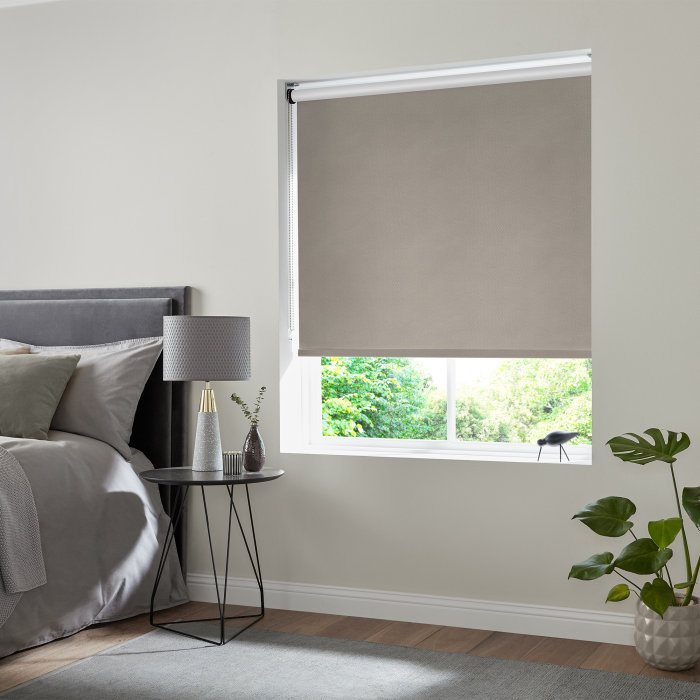 Darwin Stone Blackout Electric Roller Blind Powered By Eve MotionBlinds.