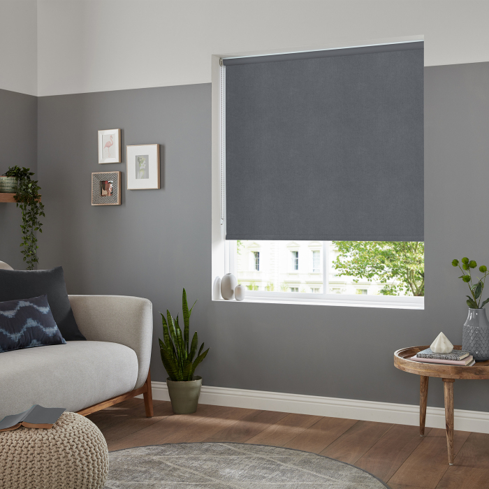 Lux Velvet Charcoal Blackout Electric Roller Blind Powered By Eve MotionBlinds.